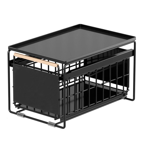 Estante de especias extraíble multiusos de 2 niveles, organizador de armario de doble fregadero con cesta de cajón para accesorios de armarios de cocina