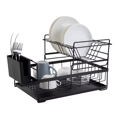 Escurridor de fregadero de cocina de 2 niveles, estante de placa de secado de almacenamiento, doble uso para platos y cuencos