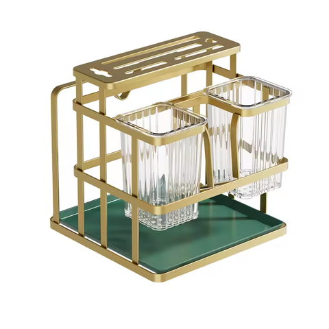 Lujoso palillo dorado de acero inoxidable a prueba de herrumbre y soporte para cuchillos Estante de almacenamiento de cocina